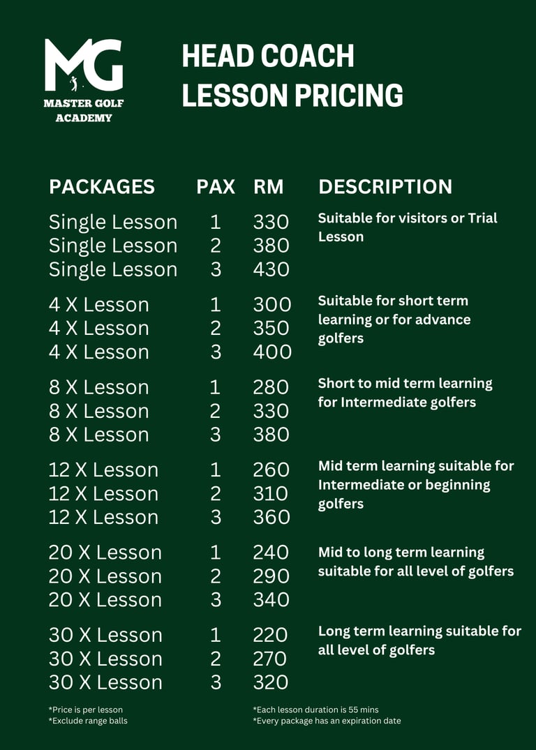 Aaron Golf is not liable for any injury or mishap on student(s) during lessons. Safety briefing will be conducted frequently.