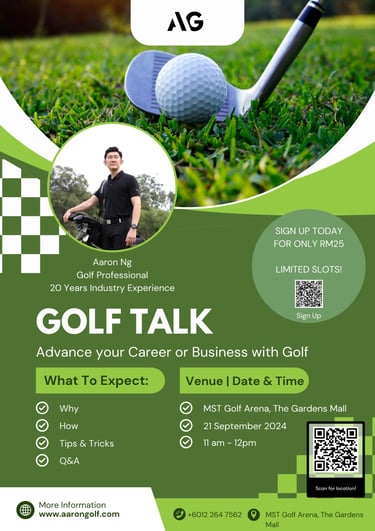 I don't conduct talks often and this will be a good opportunity for you to understand how golf can help you advance in your career or business.
